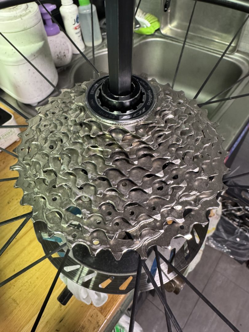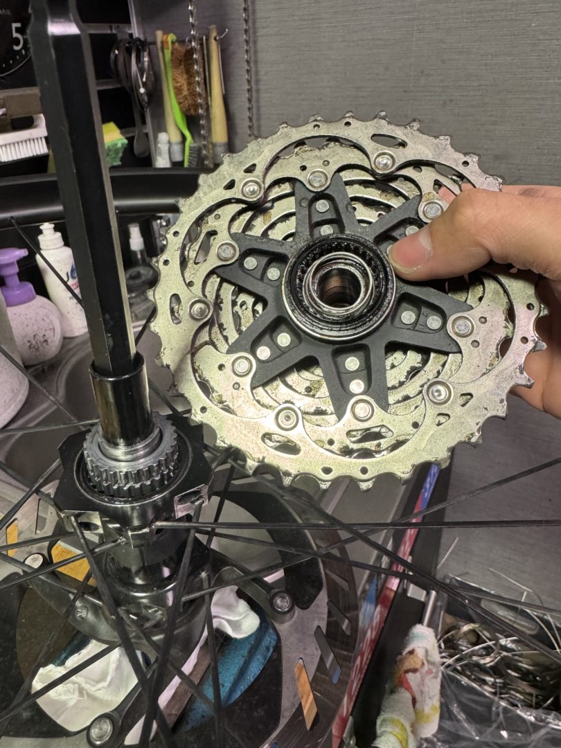 順番と向きを正しく装着し、カセット(フリーハブ付)を戻します。あとはカセット内側にある黒いキャップを内側に手で叩くだけ。以上!