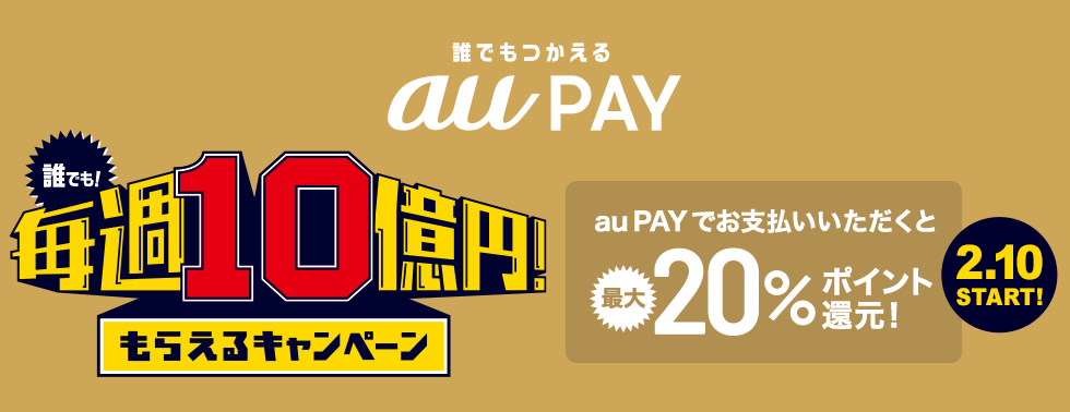 auPAY「毎週10億円もらえるキャンペーン」2月10日からスタートします!!最大7万円分のポイント還元です