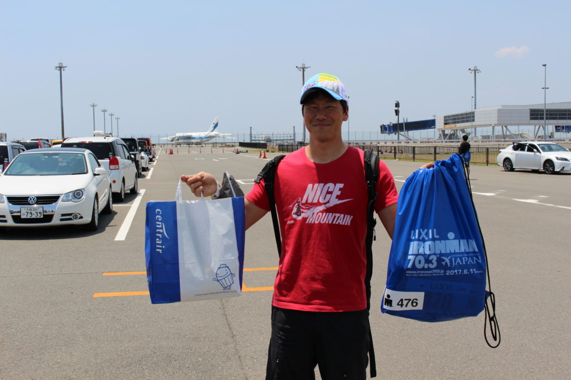 車でゴール近くのセントレア空港に向かい、そこからシャトルバスでスタート地点へ移動。