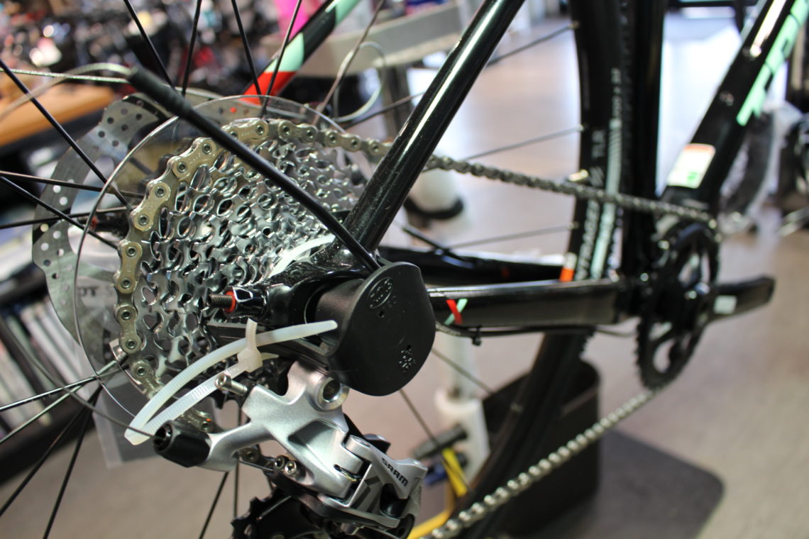 こちらのモデルは2018年『CROCKETT 5 DISC』。お客様の希望で2018年モデルのカラーが好みと言うことで取り寄せしました。トレック2018年モデルはメーカーに在庫があればセール価格にて販売できます。希望の方はスタッフに声をかけてください。