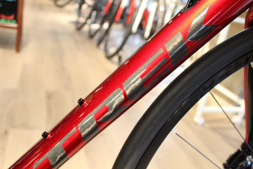 いつもありがとうございます。2019年モデルトレック人気No.1カラーになりそうなRageRed/OnyxCarbon(レイジレッド/オニキスカーボン)。高級感満載で見ていて飽きないカラーです。すでに数台納車していますが今回はディスクブレーキ仕様の軽量モデルエモンダです。