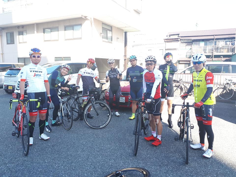 集合前に少しトラブルはありましたが無事みんな時間通りに集合しました!この日が誕生日の岩切さん(黄色のベストを着ている方です)、なんと64歳!横須賀から自走で小田原まできました。しかも車とほとんど差がありませんでした…なんという身体能力。