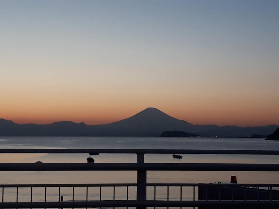 帰り車組、大渋滞の中逗子海岸からの富士山。きれいでした。自走で帰った方正解でした。