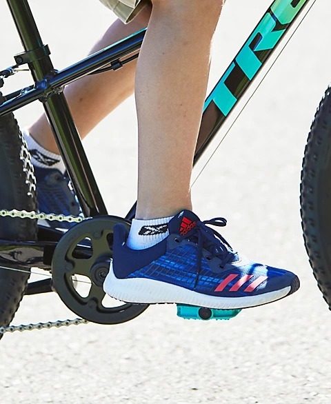 バランスバイクに乗り始めたお子さんの場合、足が地面にしっかりと着けられるようでなければなりません。補助輪付き自転車や通常の自転車の場合、母指球がペダルに乗せれる高さがお子さんにとって最適です。