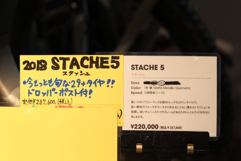 トリップサイクル篠原です。マウンテンバイクのゲレンデシーズンは終わりましたがトレイルシーズンはこれからですよ!秋は走りやすく、気温もちょうどよく楽しいんです。と言うことで最近マウンテンバイクが売れ始めてきました!トレイルにピッタリのTREK STACHE5(スタッシュ)も売れました。タイヤサイズ29×3.0プラス規格。2018年モデルですが2019年モデルとほぼ一緒で変わりません。実はあと1台あります。サイズは18.5インチ。かな~りお買い得な価格になっています。スタッシュは1台で何でもこなせるオールマイティーマウンテンバイクなのでこれから始める方やそろそろ買い替えたい方などにおすすめです。もう一度言いますがスペシャルプライスです。価格はトリップサイクルまでお問い合わせください。