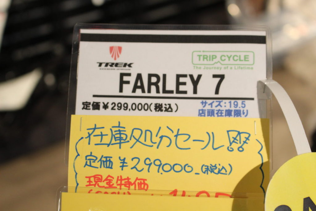 ささらに太いタイヤもございます(笑)TREK FARLEY5(ファーリー)とFARLEY7のサイズ19.5が1台づつ。タイヤサイズは26×4.7!!ファットバイクですね。タイヤが太くて重たそうですが実はかな~り軽いんです。今まで持ち上げたお客様は思わず「軽い!!」と全員言ってました。本当です。重量が軽いだけでなく走行感も軽くて良く進むんですよ。