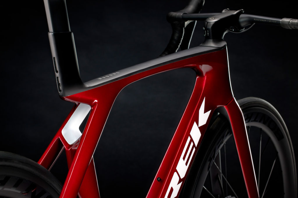 フレームデザインで目を引くのが、シートチューブ部に設けられた空洞です。この特徴的な空洞がIsoFlowテクノロジー。先代マドンと比較し空気抵抗となる気流の渦を軽減。空気の流れ、すなわち flow(フロー)が乱れることなく空力性を高めることが出来ます。