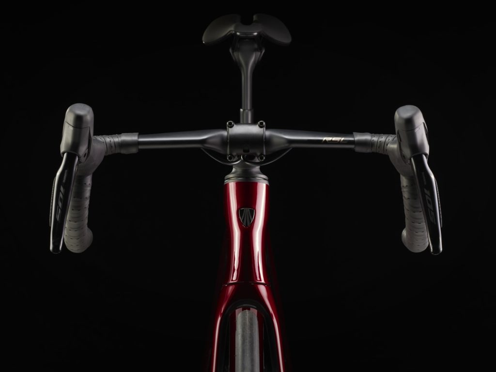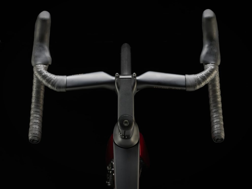 バイクとライダーは前進するため、空力が最も影響を受けるのは気流が最初に当たる正面です。新しいマドンSL6のハンドルバーは、ブラケット取付け部の左右幅がドロップ部より狭い形状で、ライダーの空気抵抗を大幅に削減。ブラケット幅を狭くすることで、ライダーポジションが抵抗を受けにくくになり、エアロ性能が高まりました。また、ドロップポジションでは幅広なため、コントロール性を高めることができます。