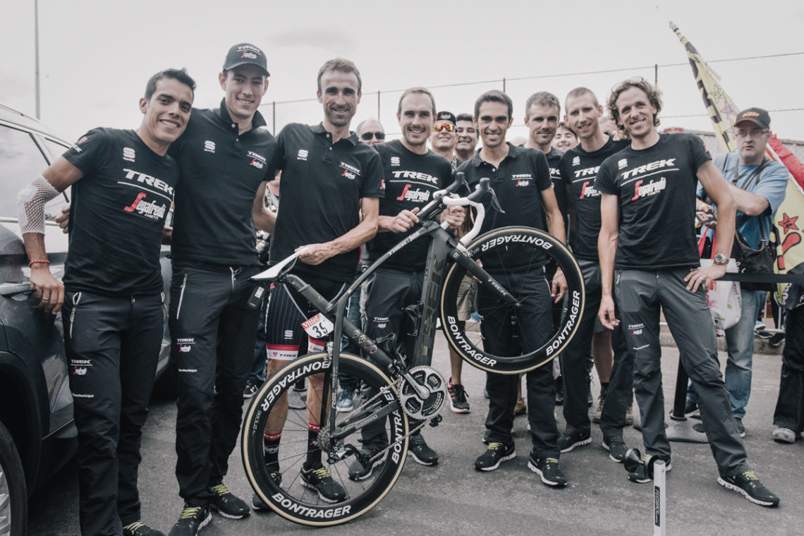 何でかって言うとこれ、海外のレースで活躍している『TREK Segafredo Team』もコンタドール選手もみんなビィンディングシューズ履いてないときはOnシューズ履いているんです。