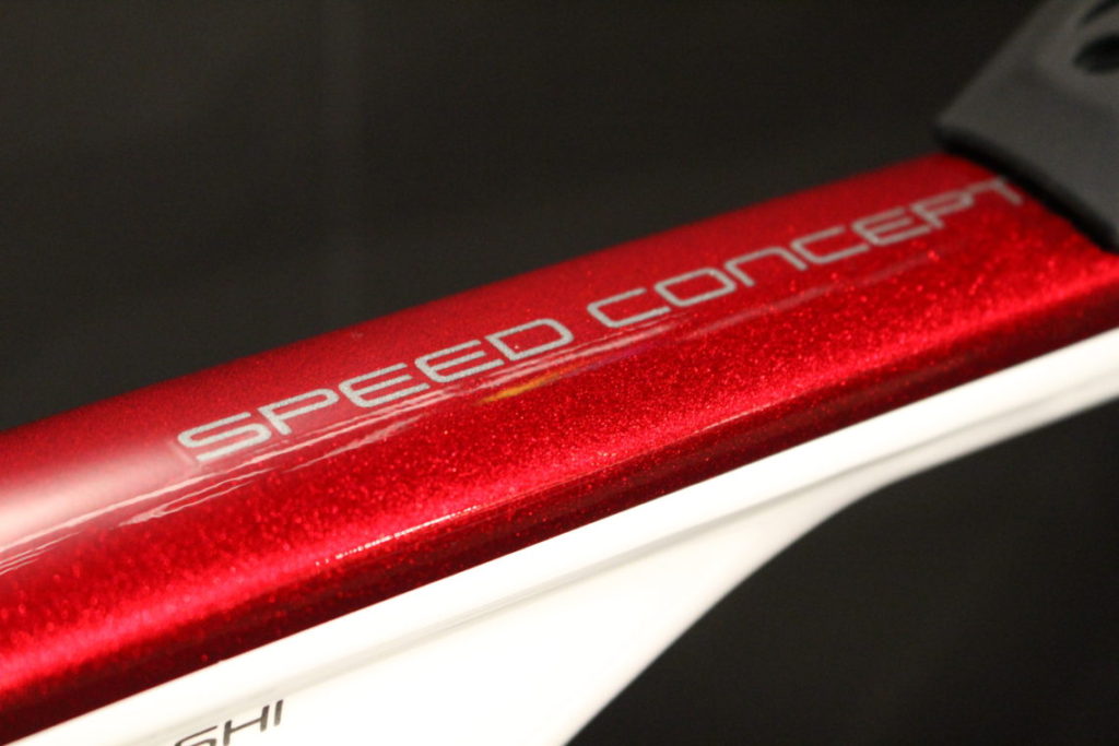 こんにちはトライアスロンも大好きなトリップサイクル篠原です。トレックのトライアスロンバイクと言えばスピードコンセプト略してスピコン。空気抵抗はもちろん少なくエアロ効果は高いんですが、トライアスロンバイクとしてはかなり軽量に仕上がります。平坦はもちろん登りが多いコースでも有利にレース運びが可能です。