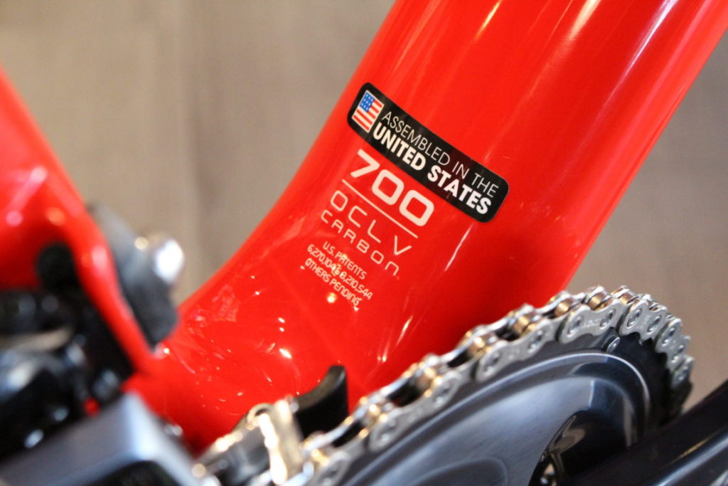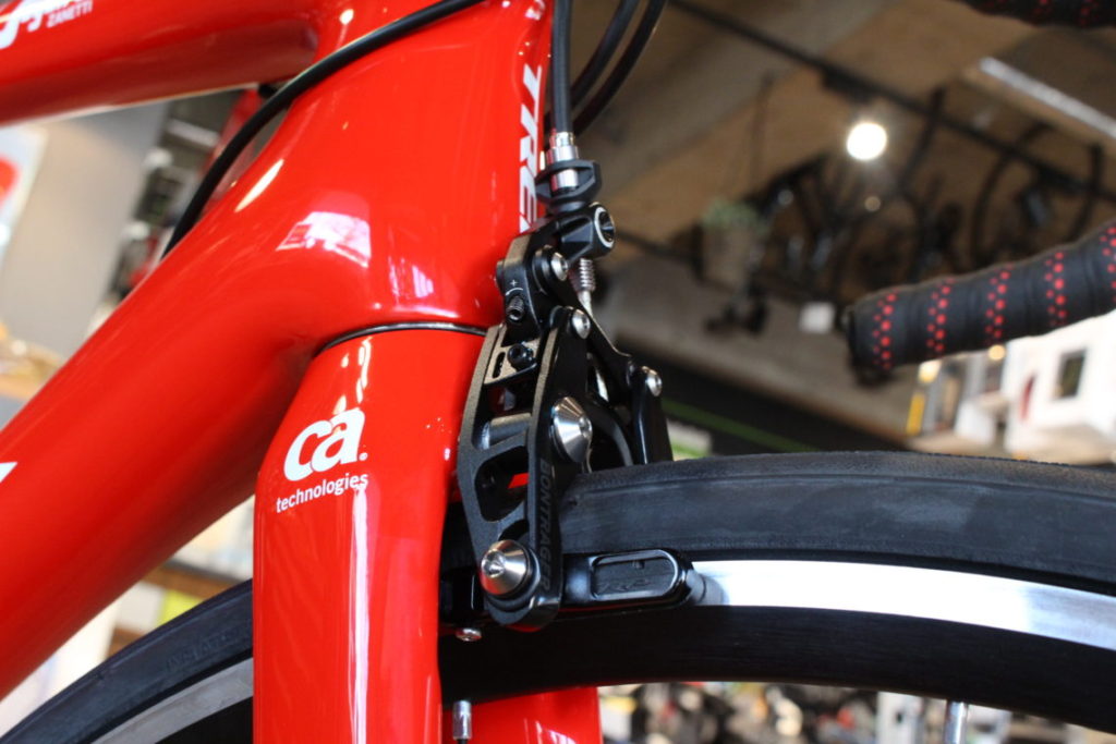 ブレーキは軽量ながらも制動力も高いボントレガー「Speed Stop Pro ダイレクトマウント」ブレーキ。肉抜きが凄いですね。これ単品でも販売していますので軽量化に興味がある方はご相談ください。