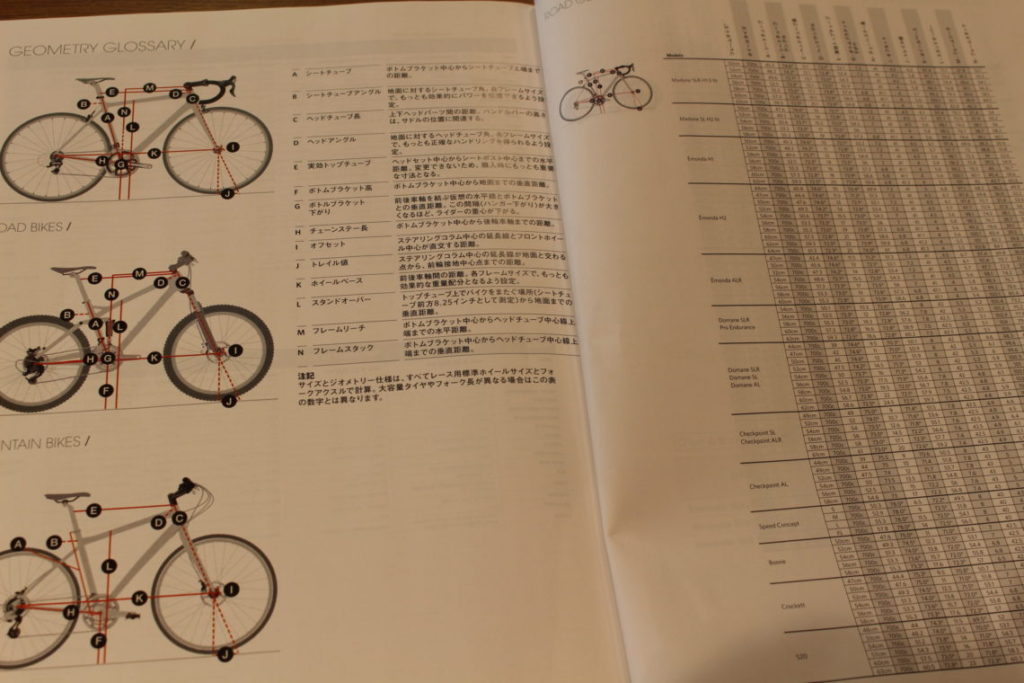 TREKカタログの後ろの方を見るとジオメトリー表が載っています。