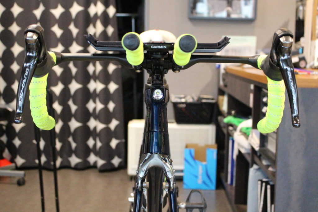 トライアスロンに出るにはTTバイクしか出られない?って訳ではありません。普通のロードバイクでも全然問題ありません。ただ、トライアスロンはスイム、バイク、ランと3種目あるので、ずっと100%の力でゴールまで行くのは普通だと無理なことなので、どこかで休むことも必ず必要です。そのためにはエアロハンドルを取り付けて状態をリラックスして、ペダルがスムーズに回るポジションが必要になってきます。これはTTバイクだけでなく通常のロードバイクでも可能なので、今お持ちのロードバイクにエアロハンドルを取り付けて練習し、レースに臨むこともできます。
