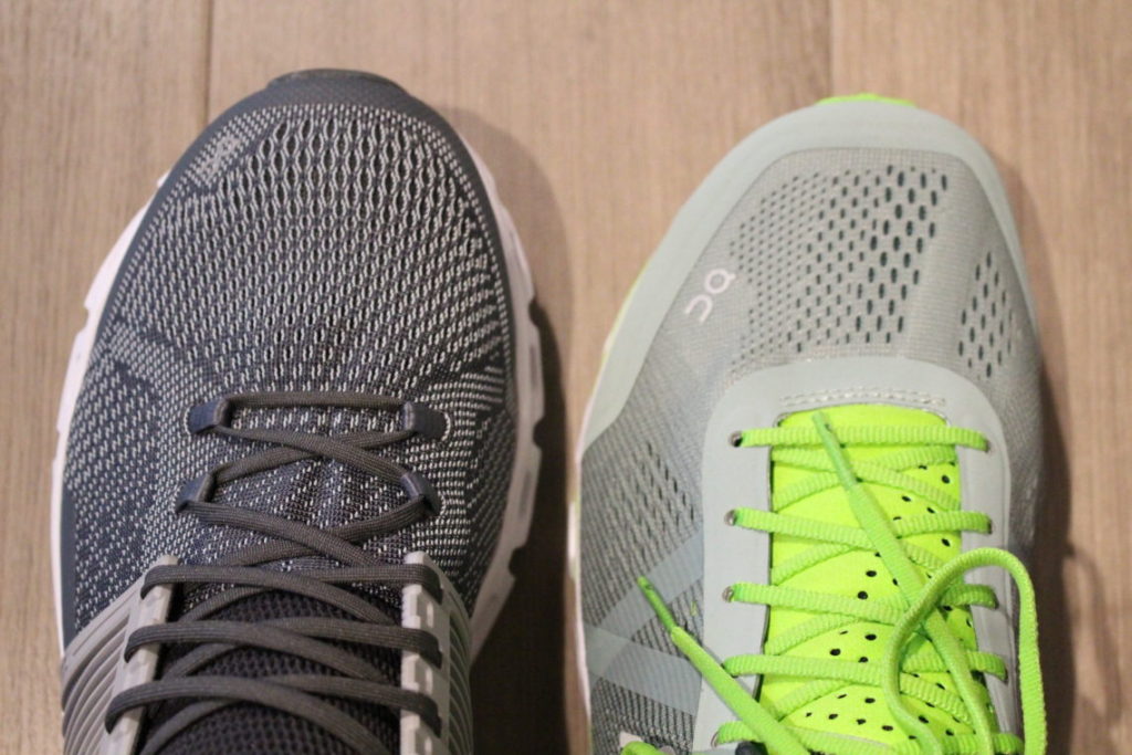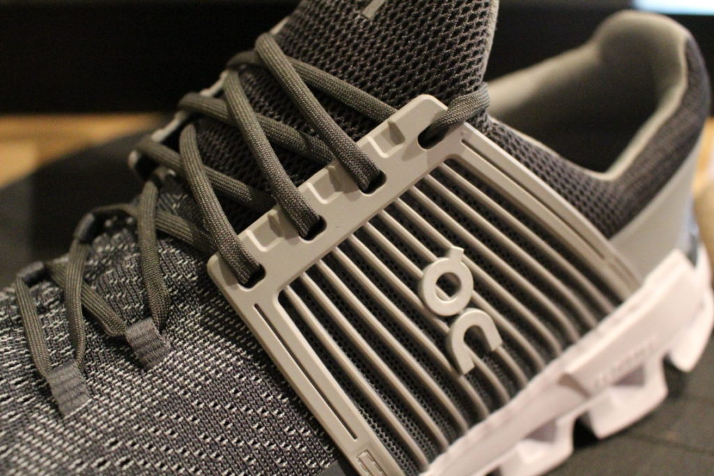 スイフトの特徴でもあるアッパーはシュータンがアッパーと一体化したブーツ構造になり、足全体を優しくホールド。アッパー部分のエンジニア―ドメッシュは固い素材が一切使われておらず、シューレースも直接アッパーのメッシュに通されており足を入れた瞬間はソフトに包み込む感覚です。日本人に多い甲高、幅広の方でも違和感なく履けると思います。あと基本的にメッシュ素材なので全体的なホールドは少しだけ緩めですが、中足部に設けられた、丈夫でストレッチ性に優れた「メカニカル・サイドバンド」(サイドにOnのロゴが入っているところ)で丁度いい締め付け感が生まれています。このバランスが良く常にストレスなく履けます。