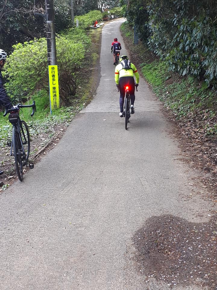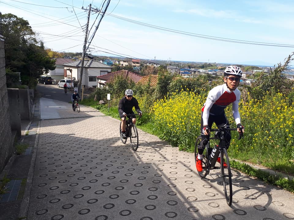 4月14日(日)のモーニングライドは久しぶりにヒルクライムコースに行ってきました!メンバーはひとり初参加のお客様を加えた6名で出発。店を出発して三浦半島の中心辺りにある、あまり知られていない武山山頂(200m)を目指します。ここのヒルクライムの売りは最高斜度32.4%!!キツイレベルではないです。私、篠原は数回登っているのでコースは知っていましたが、他の参加者は全員初トライ。さぁ、どうなるか楽しみですね(笑)