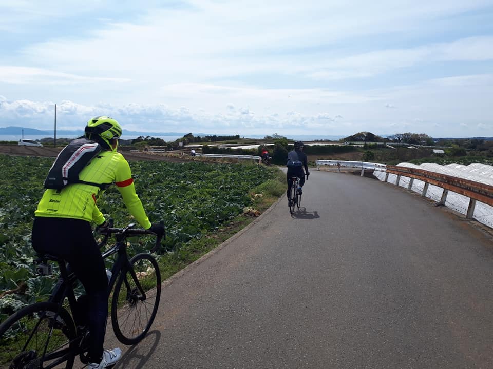 帰りはのんびり畑の中を通り、海回りルートで。