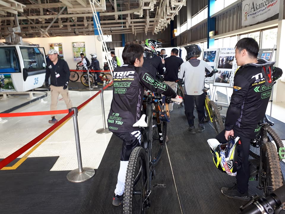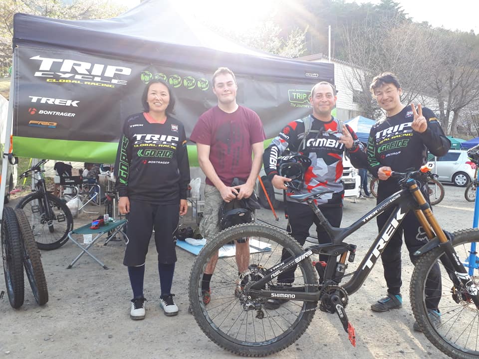 『TRIPCYCLE GLOBAL RACING』(マウンテンバイクチーム)もこの日から本格始動。なんと、この日がダウンヒルバイク「セッションC29」現地納車の新加入ツルカワさん。これでダウンヒルチームTREK SESSION C29が5台体制!