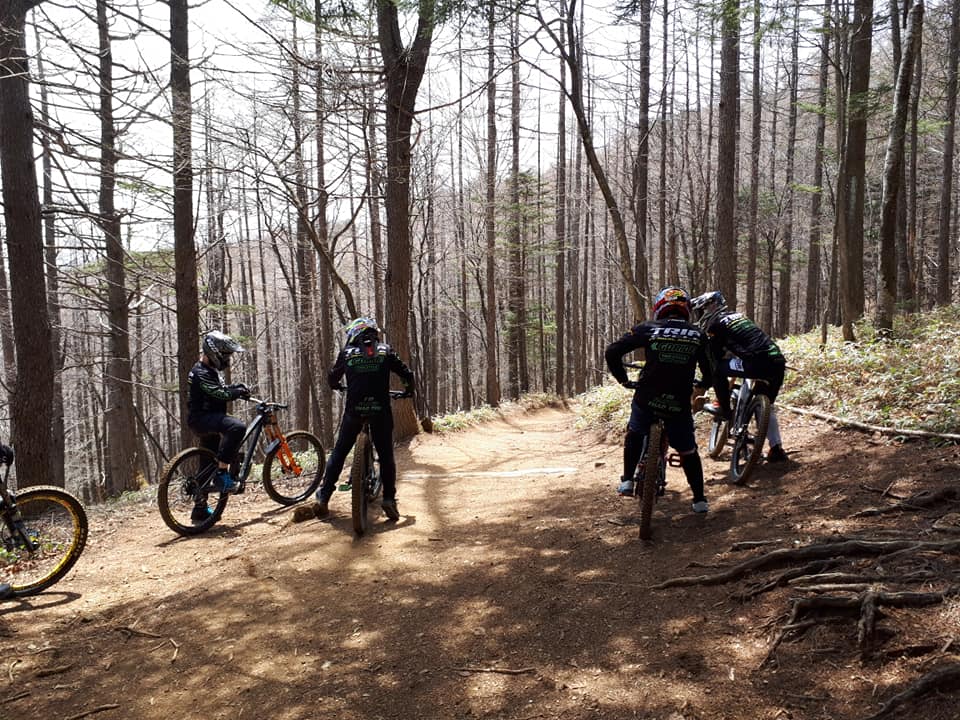 今回はオープンしたばかり、シーズンイン、初めてのお客様も参加なので、元ダウンヒルアジアチャンピオンで2018マスターズチャンピオンの『TRIPCYCLE GLOBAL RACING』チームの竹本さんのレッスン付き!!マウンテンバイク初めて半年のお客様も、ダウンヒル本格的に始めるお客様も大満足の豪華レッスン。