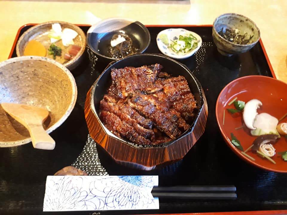 バイク設置の後はスタート、スイム会場をチェックしながら、T1(バイクで使用するアイテム)とT2(ランで使用するアイテム)で使用するバックを預けます。この大会の場合T1、T2は違う場所にあるため、かならず前日の内に袋に入れて預けなければなりません(T1用は当日でもOK)。預けたら当日レースの流れ(スイムアップからバイクスタートまで)を確認しながら、前日準備はこれで終了(15時30分位)。まずはホテルにチェックインして一休み。今回は常滑駅歩いて1分スプリングサニーホテル、選手からすると最高の位置にある便利なホテルでした。もちろんサービス、価格もグッド。なんだかんだで一休みする時間もなく、夜ご飯。今日は早めに(18時)食べて、早めに寝る作戦。夜ご飯はここに来たら定番のひつまぶし!!