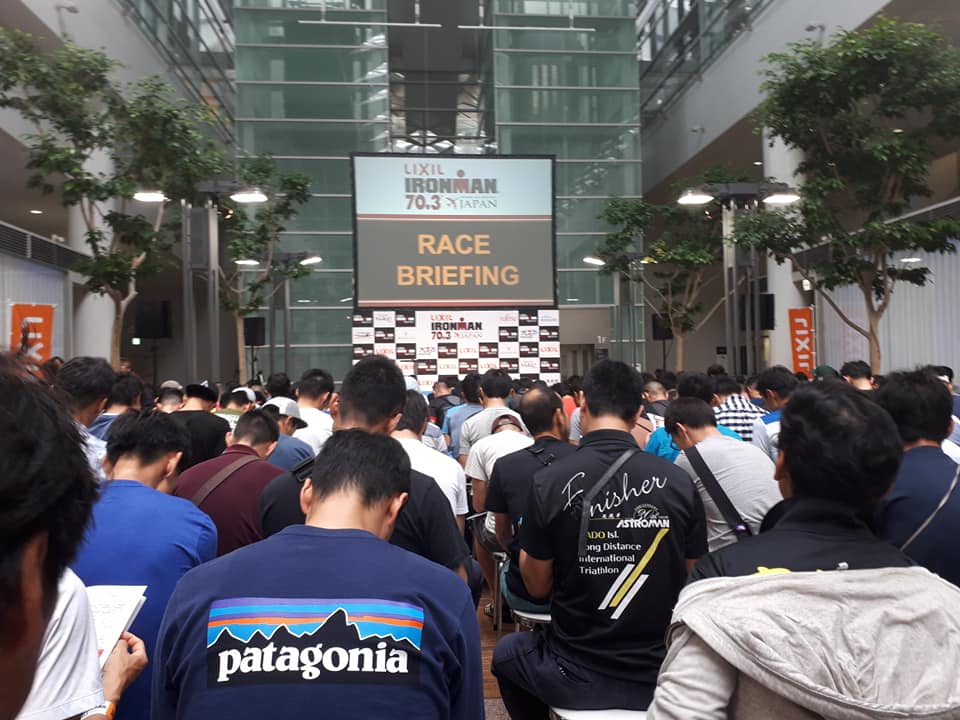 レースは日曜日の9日で前日説明会なので8日土曜日朝早く車で出ました。説明会は必ず出席で、ウェイブによって出席する時間も決められています。競技説明会はセントレア国際空港内で行われ、午前中はかなり込み合います。受付も常に1時間以上並んでました。バイクチェックインは慌ただしくなりますが、午後の説明会を受けるのも良いかも。私はこの大会は1年ぶり2回目なので準備の流れも慣れたものです!?