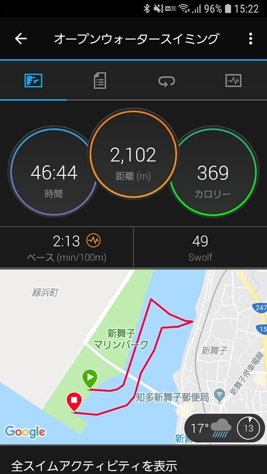 SWIM: 46:43 エイジ154位/201人中 全体1028位/1444人中