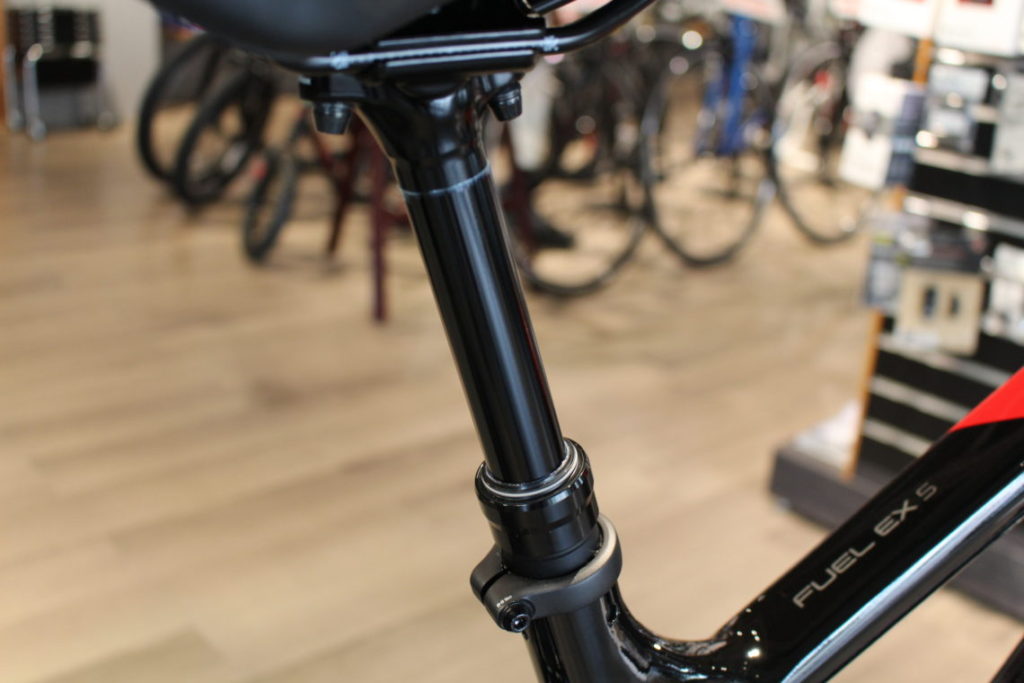 ドロッパーシートポストは登りの時はサドル位置を上げて楽にぺダリングできるように、下りの時は手元のレバーで簡単に体重移動しやすいようにサドルを下げることができ、かなり便利です。ボントレガー「Lineドロッパーシートポスト」は価格も¥24,900(税込)とリーズナブルで反応も良く、おすすめです。取り付ける際はサイズなどあるのでご相談ください。