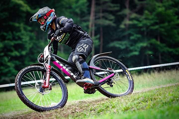 TRIPCYCLE GLOBAL RACINGチームのエース、女子エリートの岩﨑選手。2018年は全日本選手権2位でしたが、今年はトレックのセッション29インチに乗り換えて、全日本チャンピオンを狙います。予選は流しながらも、最後ゲレンデで飛びそうでしたが…1位で通過。