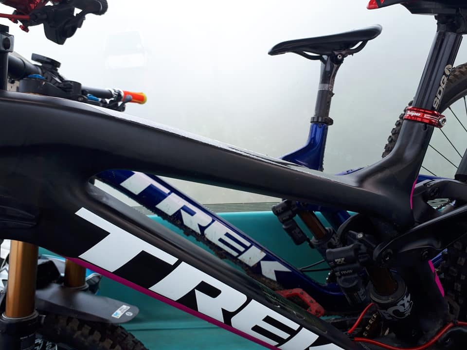 自転車はトレックのダウンヒルバイクSession C 29です。29インチの最新ダウンヒルバイクになります。5台並ぶとカッコいいでしょ(笑)