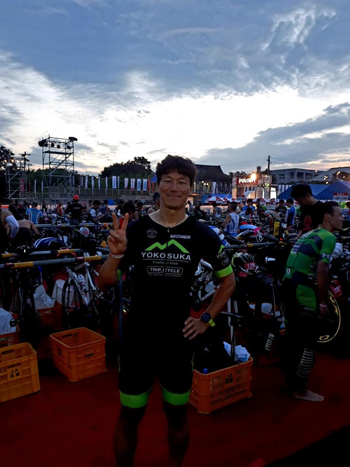 トランジションエリアについて、いつもはラックにバイクがほとんどないんですが、今回は3分の1くらいあった感じ、自分の中ではスイムは上出来と確信(笑)。 タイムもこの状況でこれなら全然OK。