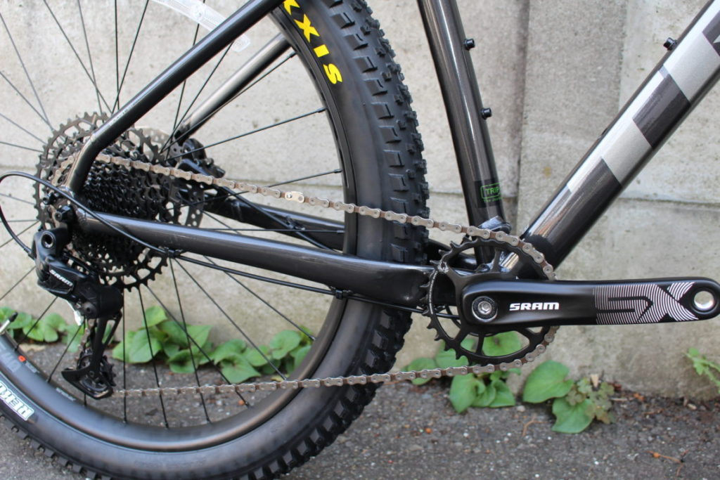ギア関係は最近主流のSRAM1×12SPEED。シンプルで扱いやすく、トラブルも少ないです。12スピードだけですが、登りも下りも十分対応します。
