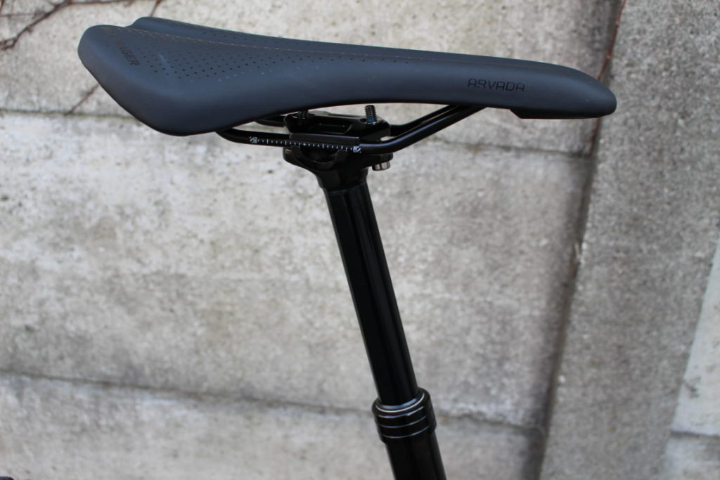 ドロッパーシートポストも標準装備。ドロッパーシートポストはハンドル手元レバーの操作でサドルの高さを簡単に上げたり、下げたりできる優れものアイテム。登りはサドルを上げて楽々ぺダリング。下りはお尻の位置を後方にもってきて、簡単に重心移動できるようにサドルを下げます。これが一瞬でできるので、トレイルなど走る時は必需品。普段の通勤などでも意外と便利ですよ。