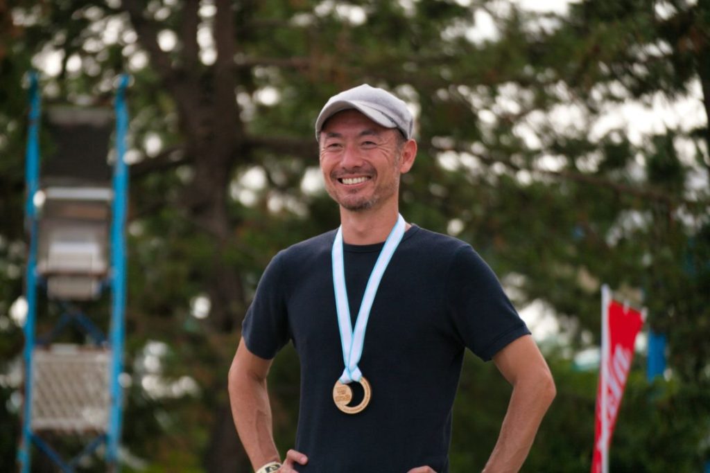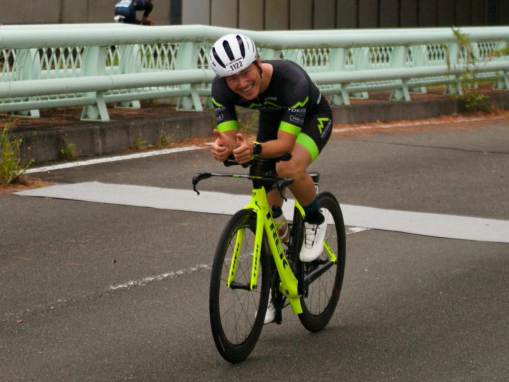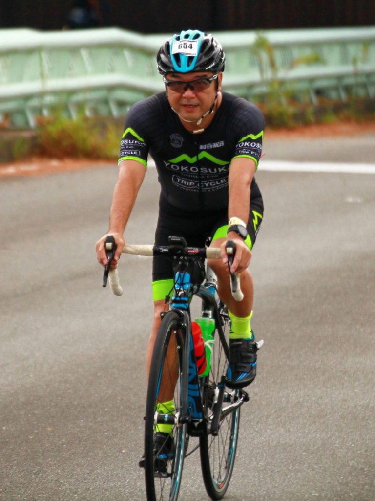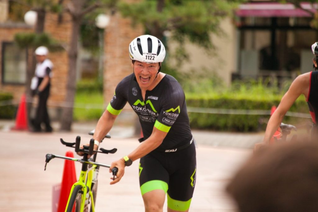 チーム最年長65歳、バイクが速い岩切さん。今年トライアスロン2年目で、トライアスロンの流れがわかってきて、苦手なスイムも楽しみながら落ち着いてレースできるようになってきました。今回はちょっと表彰台狙ってましたが、結果エイジ4位!惜しい。去年から大幅にジャンプアップしましたが、あと一歩。岩切さんはしっかり練習しているので、次に期待しましょう!!