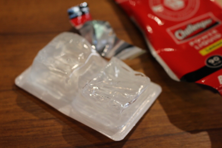 なんと、「DISPEN PAK(ディスペンパック)」を採用した、初の補給食。ディスペンパックと言えばコンビニでアメリカンドックを買うとついてくるあれです。早速購入して試しましたが、とにかく食べやすく早い。なんと3秒!! そして手も全く汚れません。味はレモンですが酸っぱさはなく、ほど良い風味がある感じで、少しサラサラ系(ドロット系ではありません)で飲みやすく、あまり口に残りません。
