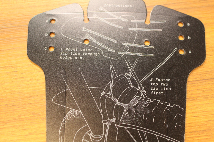最近はMAD GUARD(マッドガード)と言っても、樹脂でできたペラペラの簡易的なタイプが主流です。長さ25cm位でフロントサスペンションにタイラップ(結束バンド)で固定します。小さいですがこれだけでも小石が飛んでくるのはかなり防ぐことができます。2分で取り付けられ、価格も大体¥2,000以下。