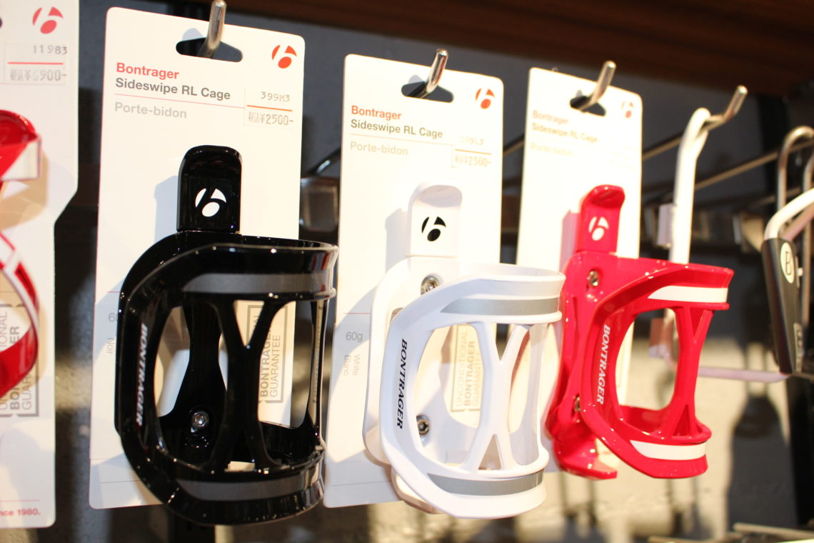 フレームサイズによってはボトルの抜き差しがしにくくなるので、ボトルケージはBONTRAGERの『Sideswipe RL』がおすすめ。
