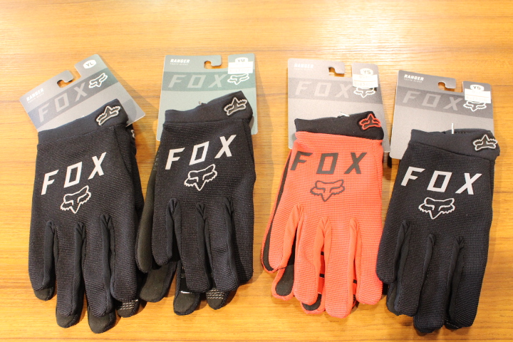実はFOXはキッズ用ウェア、パンツ、グローブなど充実しているんです。全部は展示できないですが要望の高いグローブは新しく入荷しました!