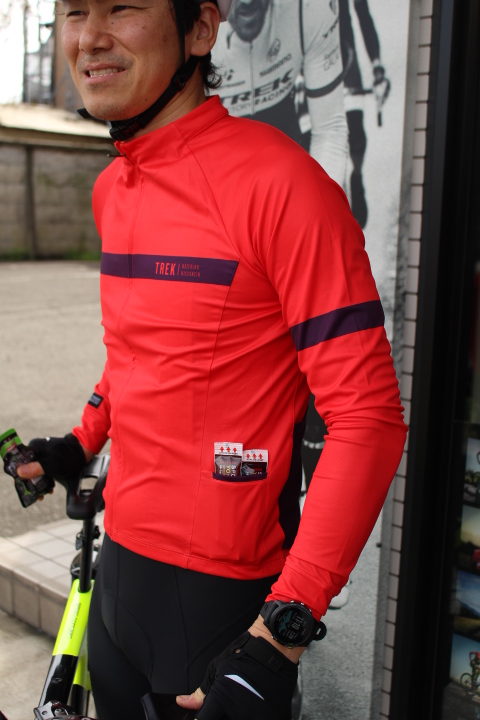 カラーも明るくて目立つレッドで安全性も高く、胸にさり気なくTREKのロゴが入っているのがいいですね。実はソックスも同じカラーでおシャレ!?