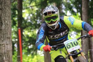 6日(金)天気は曇り、DHI競技の練習日とタイムドセッション(タイム計測)が行われます。今回のコースはシンプルなレイアウトのハイスピードコース。難易度は低いんですが、ミス一つが大きなタイムロスにつながる気が抜けないコース。初日はコースの走行ラインを見極めていき、最後一本タイム目安のタイムドセッション。私はいつも通り(笑)力が入りすぎてグダグダの41位。岩﨑選手は2位に14秒差をつけて1位。うまく走れなかったと言ってますが、初日にしてはまぁまぁの出来かなと。