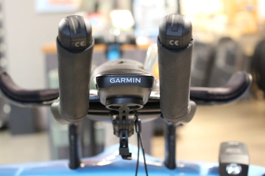 BTAボトルを付けた状態で前から、ボトルがあるようにはみえない。ガーミンとライトもスマートに取付可能。(ハンドルに追加のライト付けてます)