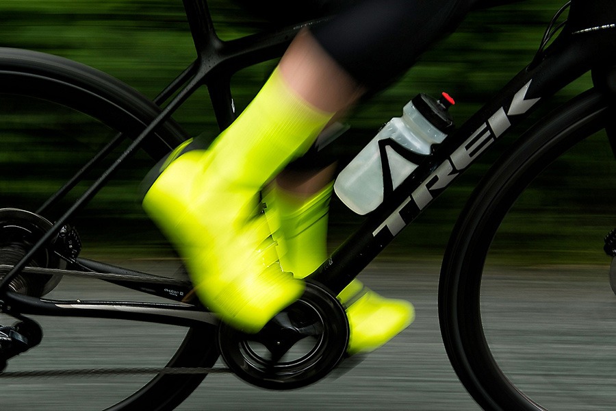 自転車事故に遭わないようにするためには、被視認性が大切であり、日中点灯用ライトを用いることが良い方法であるということを紹介しました。更に、ペダリングによって動かす脚と足先を目立たせることで、被視認性を高め、自転車が走っていると認識させることができるのです。蛍光色のシューズやソックス/レッグウォーマー、シューズカバー、すそどめなどを活用しましょう。また、夜間は蛍光色の効果がありません。反射素材のついたものを積極的に身に付けるようにしましょう。