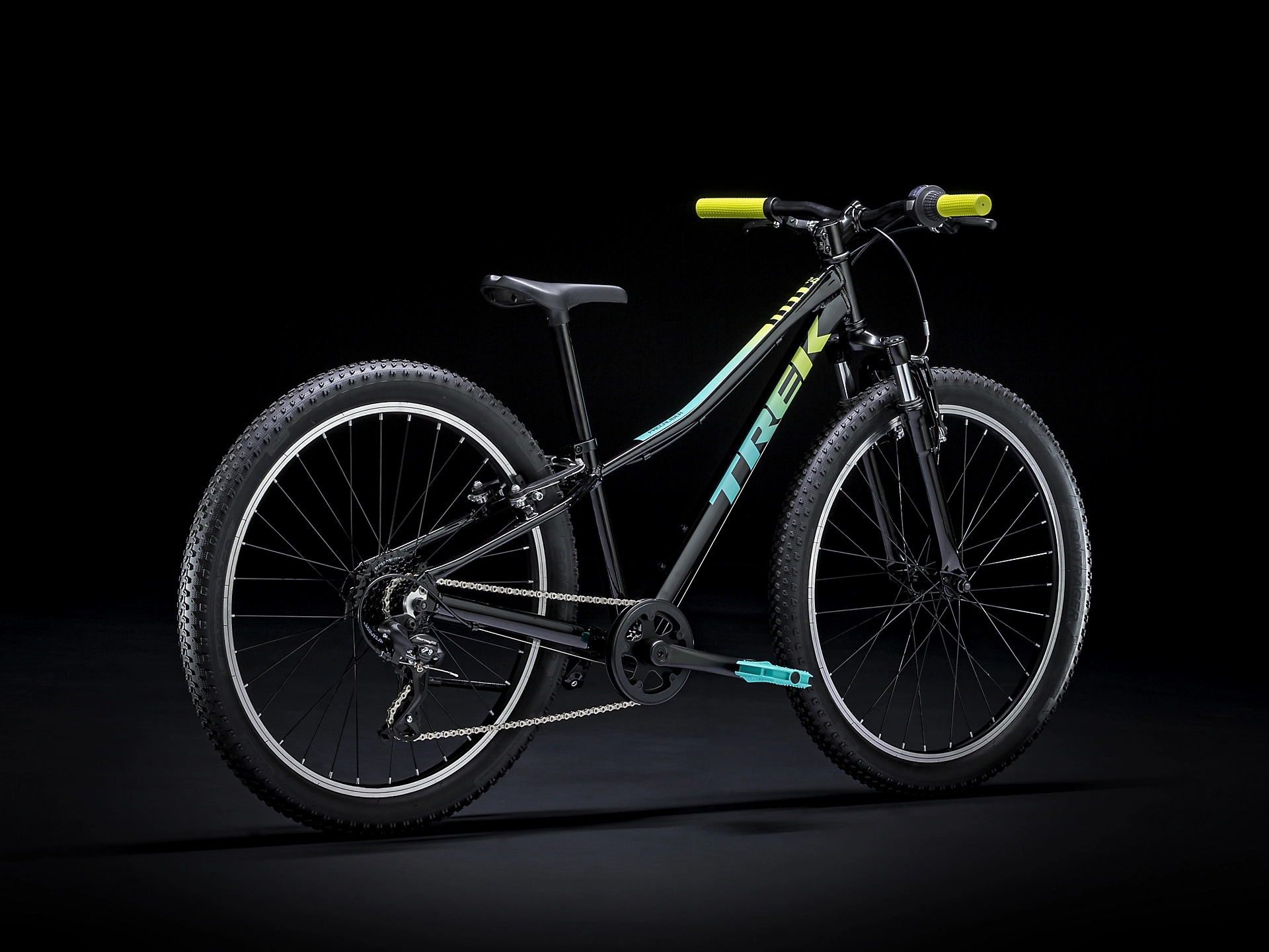 Precaliber 24 8-Speedは、多才なキッズバイク。舗装路を外れてダートを走るのが大好きな若き冒険家に最適だ。丈夫ながら軽いアルミフレーム、高性能のサスペンションフォーク、家から学校までレースし、木々の間を走り抜け、家族と共にトレイルやサイクリングロードを楽しむのにぴったりの8速ドライブトレインを搭載する。対象年齢8〜12歳、適用身長130〜150cmのお子さんに。