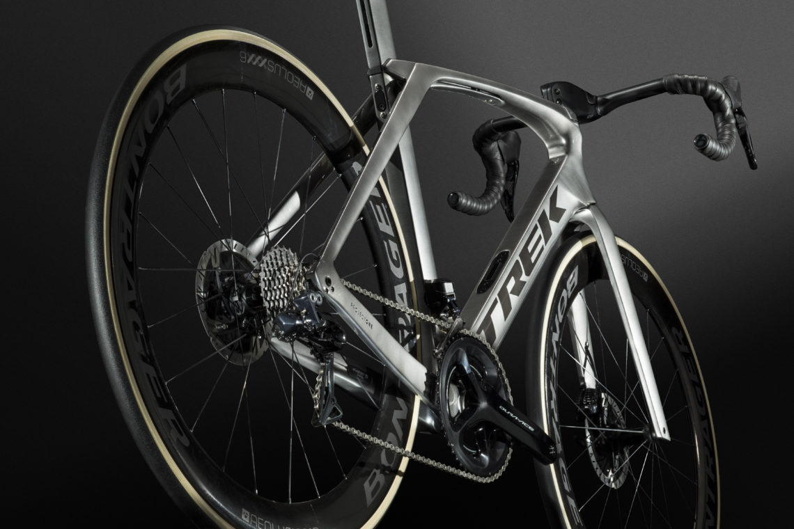 Chrome Tourは、ツール・ド・フランスでTrek-SegafredoライダーのMadone SLRに採用されます。一見、昨年登場したツール限定ホワイトチームカラーに見えますが、実はまったくの別物です。角度で上品に色が変わるパールホワイトを基調とし、レッドとブラックは深みのあるクロームカラー。特大のTREKロゴは、プロトンで最も注目されていますね。