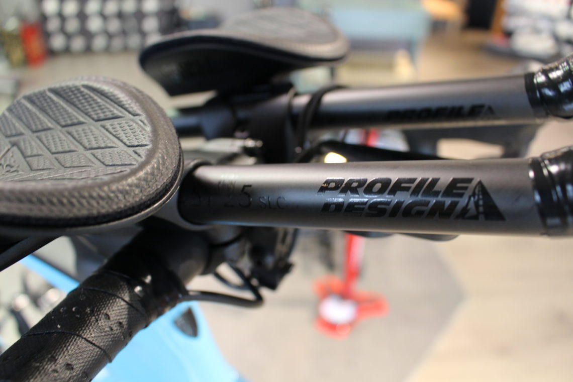 五島は初めてで平地はないよと聞いていたので、スピコンか軽量のマドンか迷っていたところ、お客さんが「新型マドンにDHバーを付けたら、トライアスロン最強じゃない」と一言。